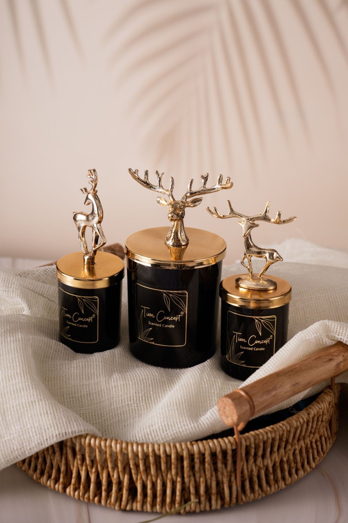 Bardak 150 gramdır ve 45 saat yanmaktadır. Kenardaki küçük olan bardaklar ise 4.5 cm çapında 6 cm boyundadır. Küçük olan mum ise 60 gramdır ve 22 saat yanmaktadır. Bardaklarımız siyah parlak boyalı olarak kullanılmaktadır. Büyük olan bardakta geyik kafası tepelik ve küçük olan bardakların birinde ayakta geyik diğer küçük bardakta ise geniş boynuzlu geyik tepelik kullanılmaktadır.