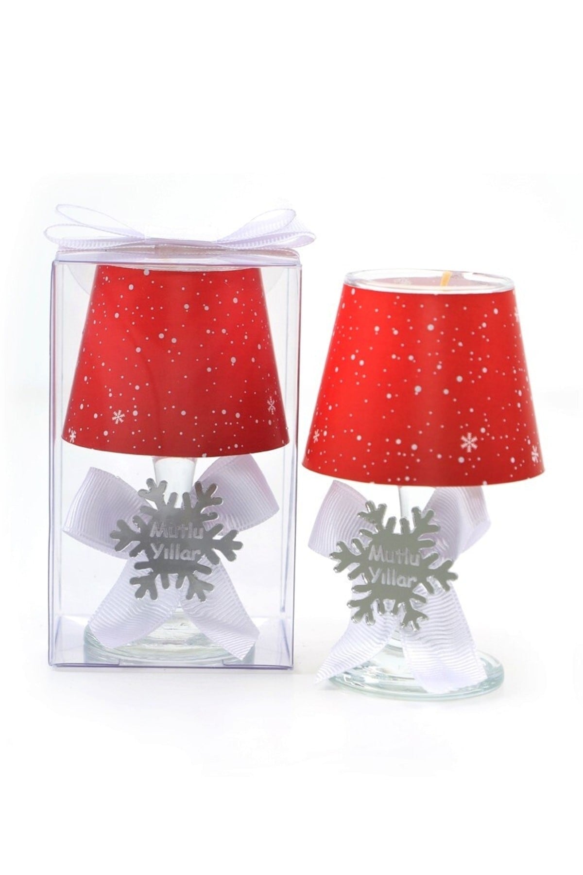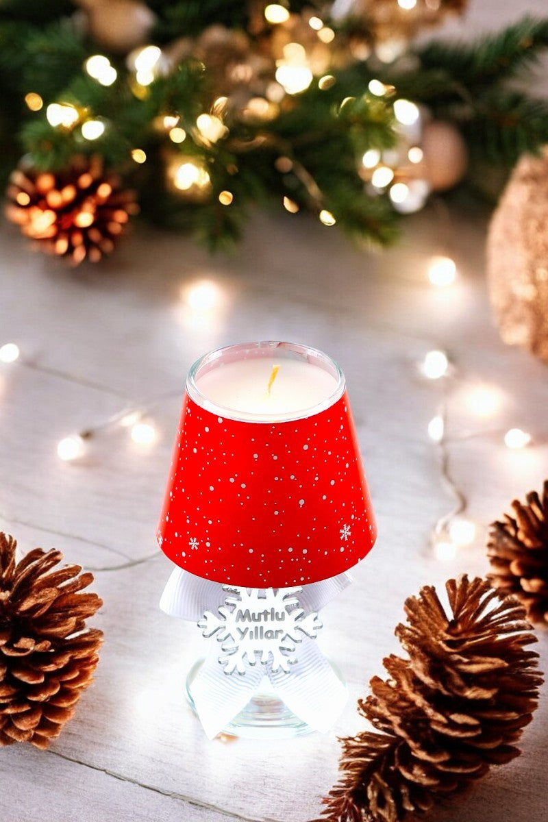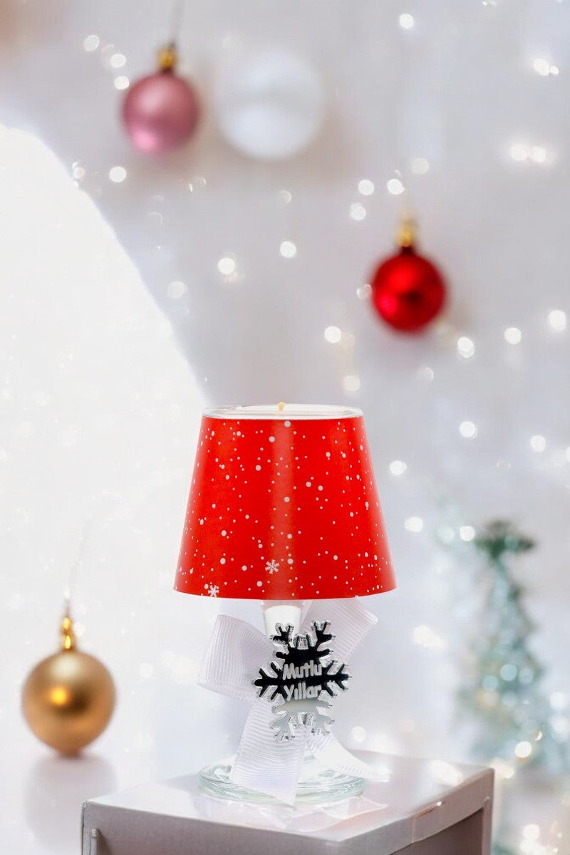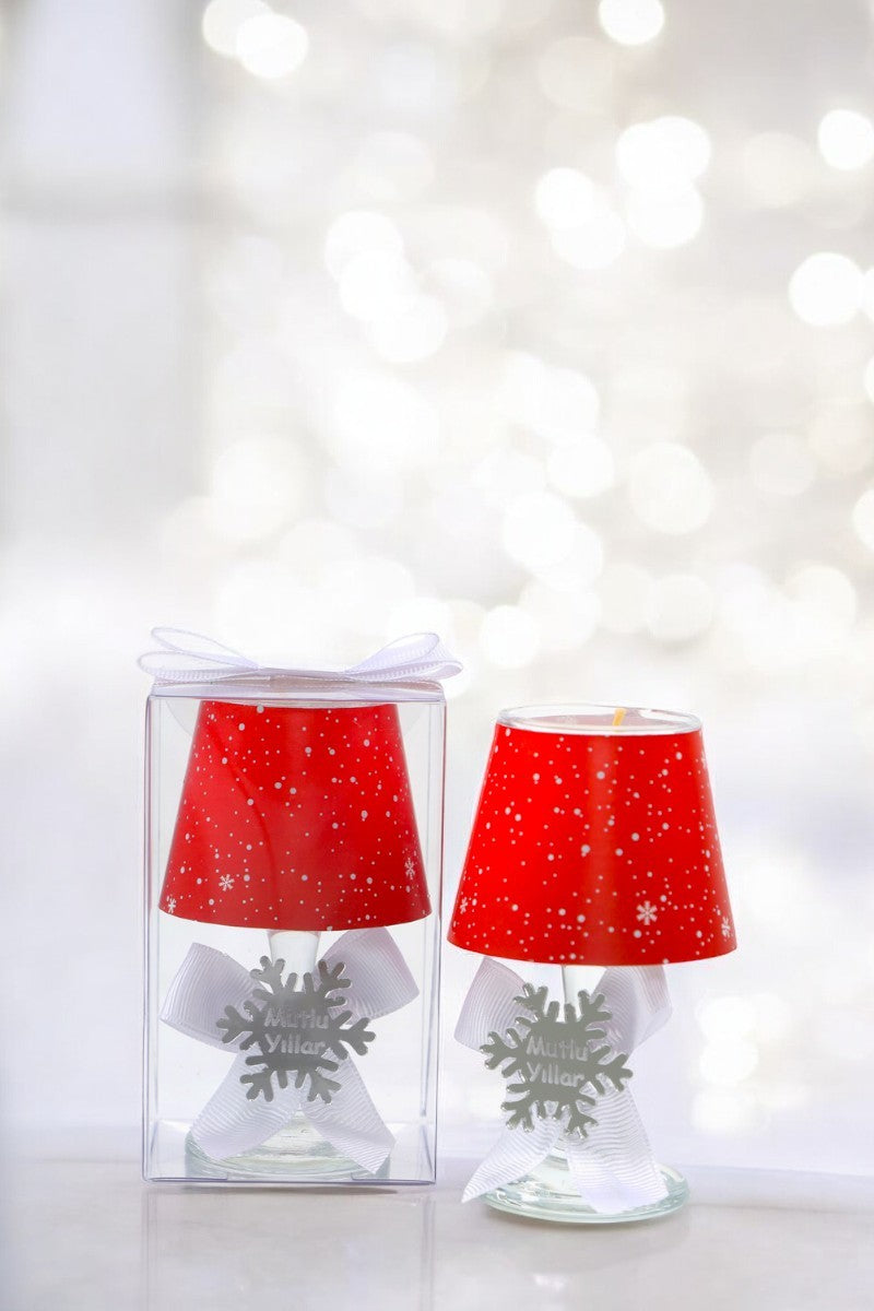 Yılbaşı Kar Tanesi Konseptli Kırmızı Renk Hediyelik Abajur Mumluk ( 2 Adet )