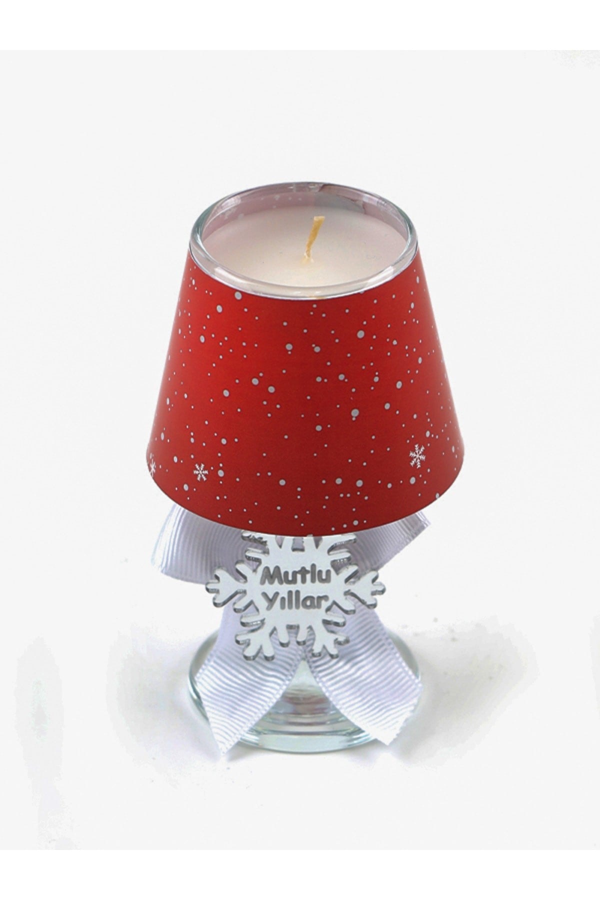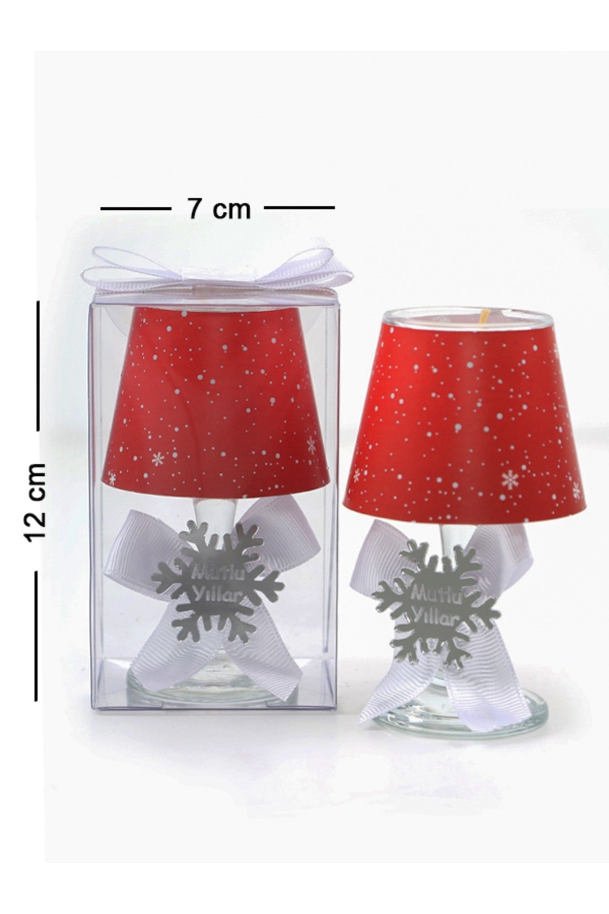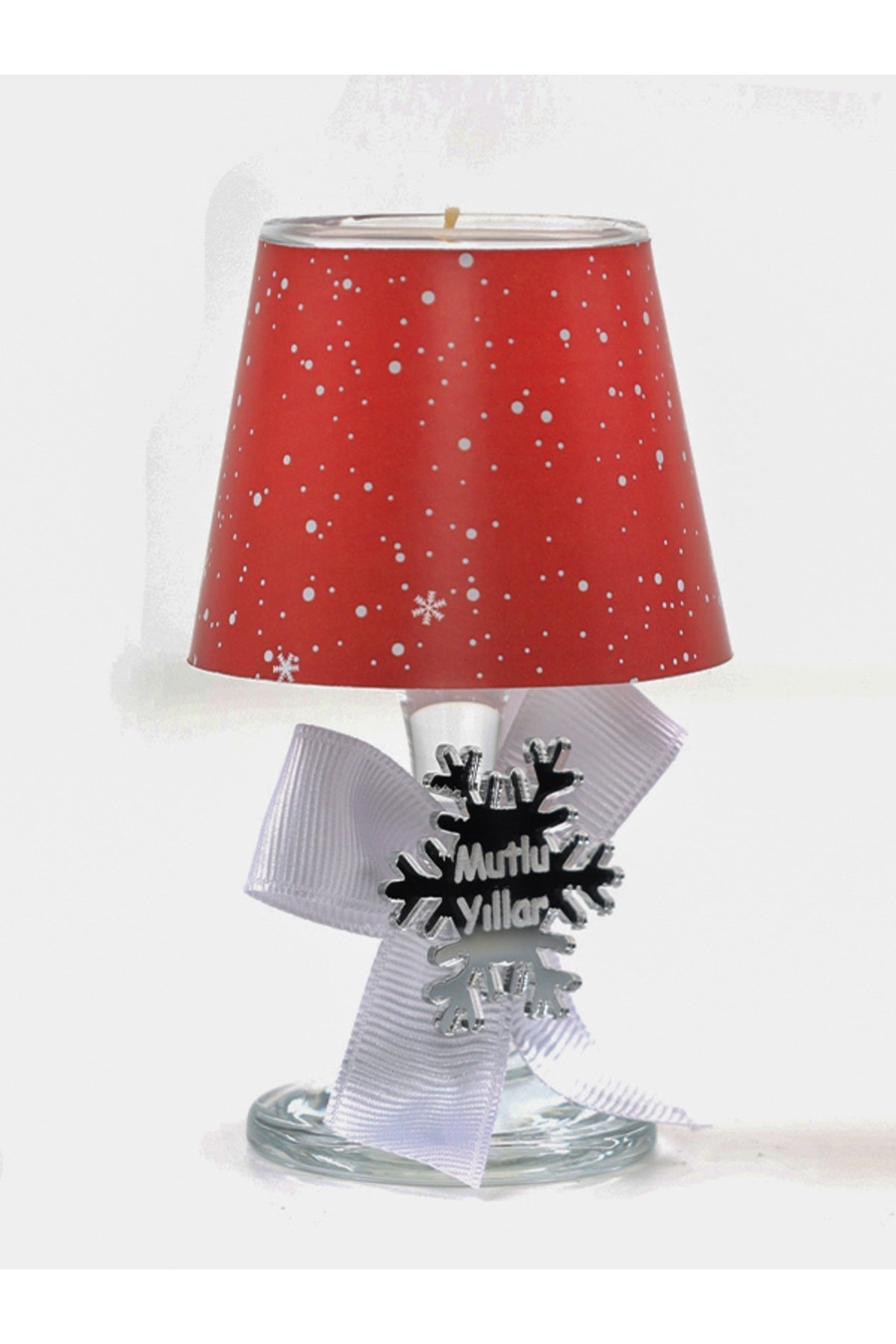 Yılbaşı Kar Tanesi Konseptli Kırmızı Renk Hediyelik Abajur Mumluk ( 2 Adet )